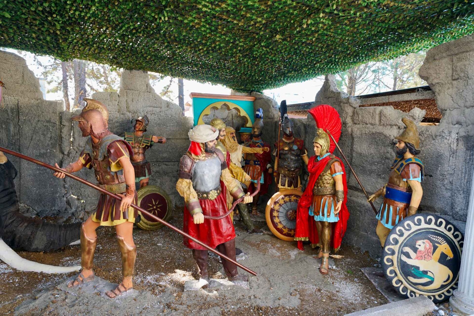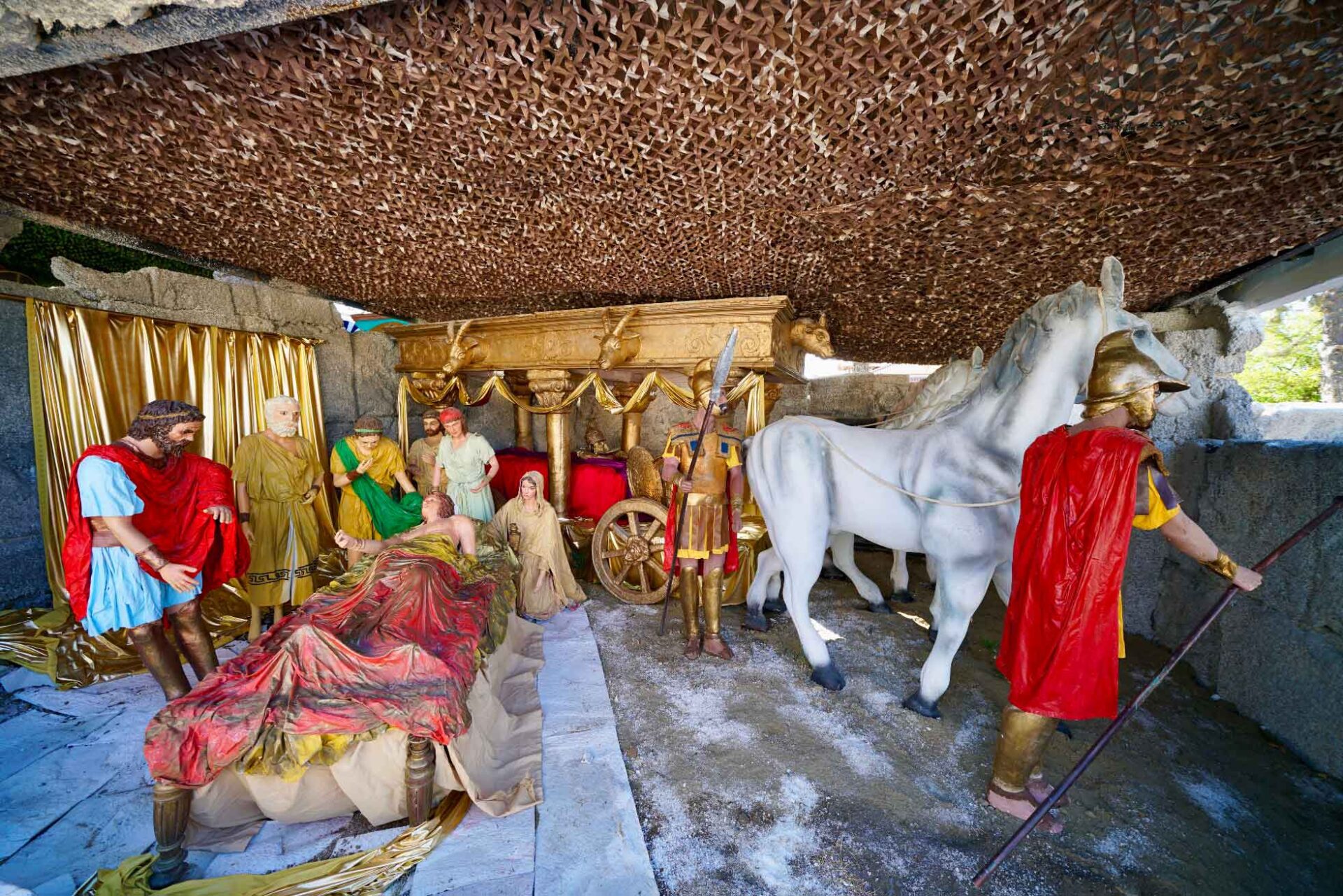Οι επισκέπτες αυτής της μοναδικής έκθεσης έχουν την δυνατότητα να περιηγηθούν σε δεκατέσσερις θεματικούς σταθμούς, που αναδεικνύουν, τόσο την στρατιωτική και πολιτική του πορεία, όσο και την πολιτισμική του κληρονομιά σε Ανατολή και Δύση. Οι δεκάδες φιγούρες φυσικού μεγέθους που πλαισιώνουν τον Μέγα Αλέξανδρο στις σημαντικότερες πτυχές της ζωής του στις τρισδιάστατες αναπαραστάσεις, δίνουν τη δυνατότητα στο κοινό να βιώσει με ζωντανό τρόπο την ιστορία του.